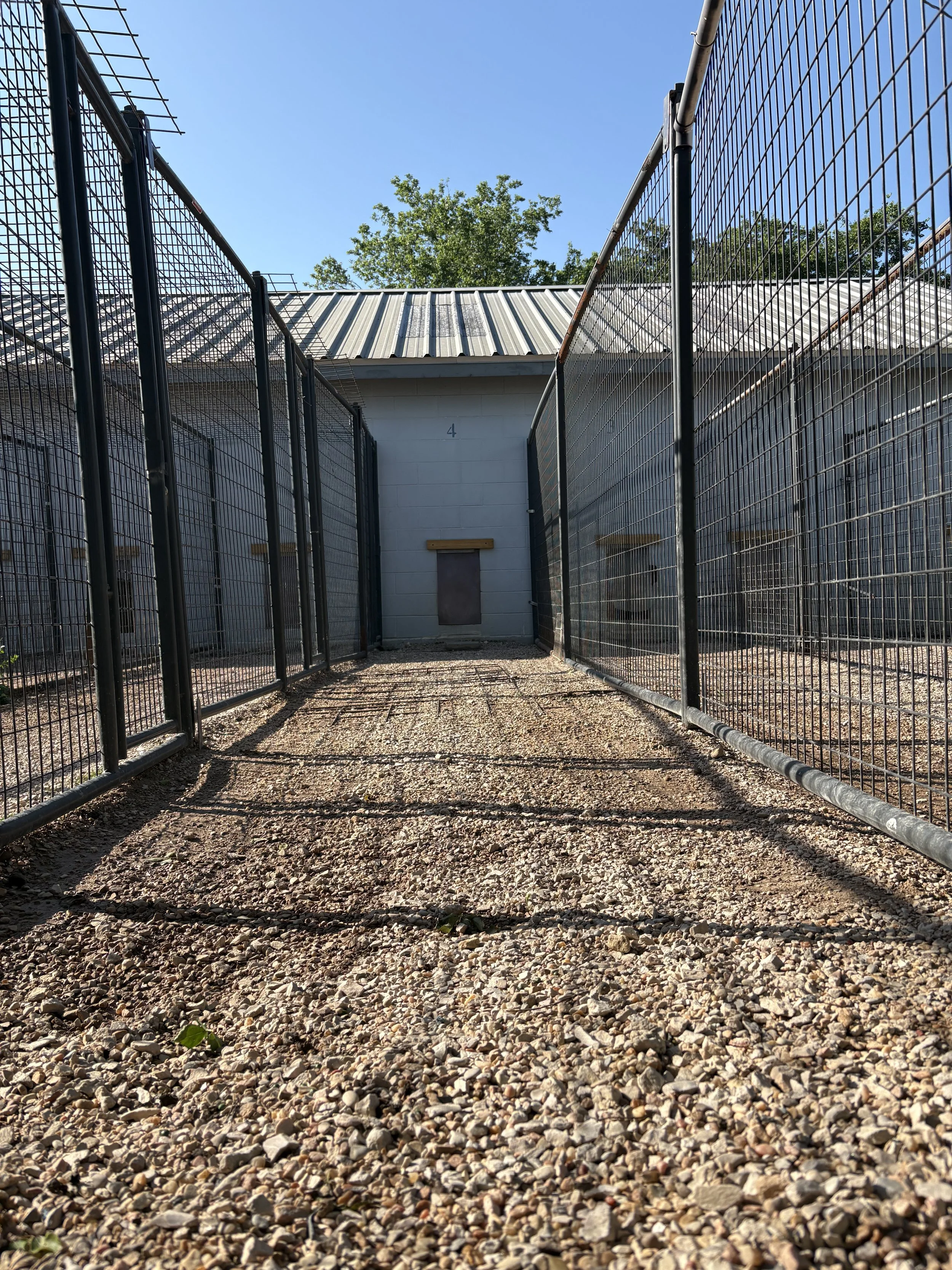 Our Kennels are 5 feet x 5 feet on the inside and 5 feet by 36 feet on the outside giving your dogs close to 200 Sq Ft!